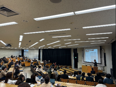 この講演は、「ベーシック韓国語IV」を履修する1年生約130名を対象に実施され、「インテンシブ韓国語IIB」や「韓国語コミュニケーション・スキルアップIVC」の履修者にはオンデマンドでも提供されました。